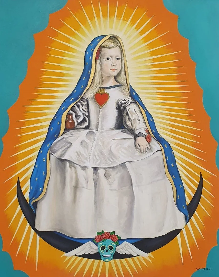 Ana Pagola Divasson se licenció en Bellas Artes por la Universidad de Barcelona. Es una pintora navarra conocida por su reinterpretación de obras clásicas, particularmente las de Diego Velázquez, a las que infunde una nueva vida con una paleta vibrante y elementos de la cultura pop. En su estudio ubicado en Pamplona, dedica gran parte de su tiempo a transformar íconos del Barroco en obras contemporáneas, logrando un equilibrio entre el respeto por los maestros antiguos y su propio estilo colorido y juguetón. Actualmente, está trabajando en una serie de 30 versiones de "Las Meninas" de Velázquez, un tema recurrente que destaca su habilidad para mantener la esencia de los originales mientras los adapta a su visión personal.