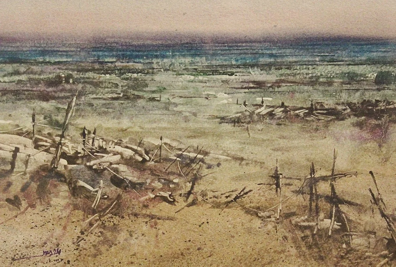 Mikel Sanz Serrano, nació en Pamplona en 1987. De formación Arquitecto técnico, Ingeniero de Edificación y Graduado en Derecho, su viaje con la acuarela comienza en verano de 2018, cuando toma prestada una cajita de acuarelas de su padre y se pone a experimentar.